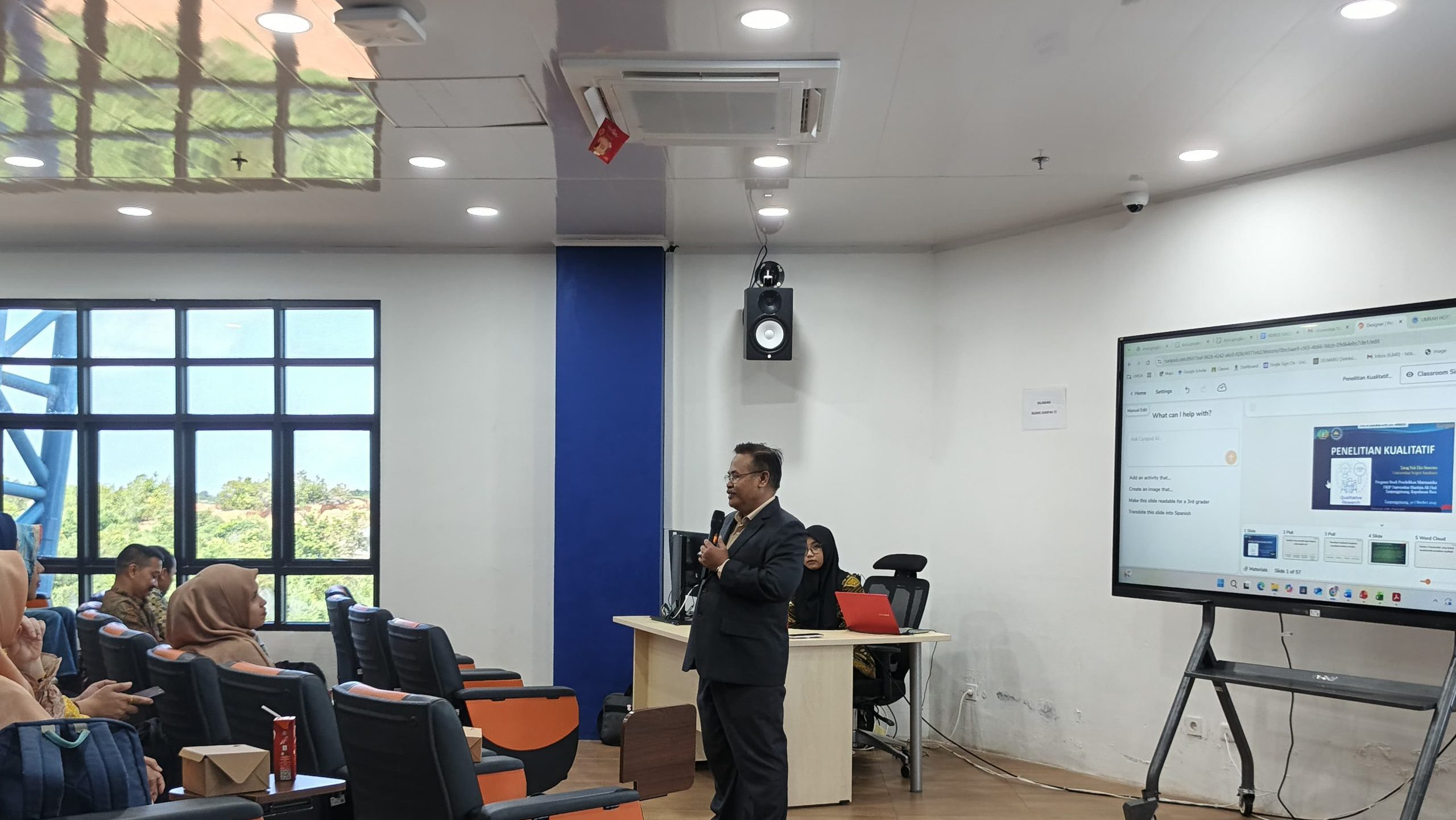 Memahami Karakteristik Penelitian Kualitatif Narasumber menjelaskan bahwa dalam pendekatan kualitatif, peneliti berperan sebagai instrumen kunci yang terjun langsung ke lapangan (naturalistic setting) untuk mencari makna yang esensial. Beberapa poin penting yang disampaikan meliputi: